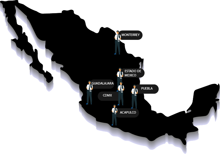 Contamos con presencia estratégica en los principales estados de la República Mexicana, ofreciendo seguridad con el respaldo de más de 20 años de experiencia.